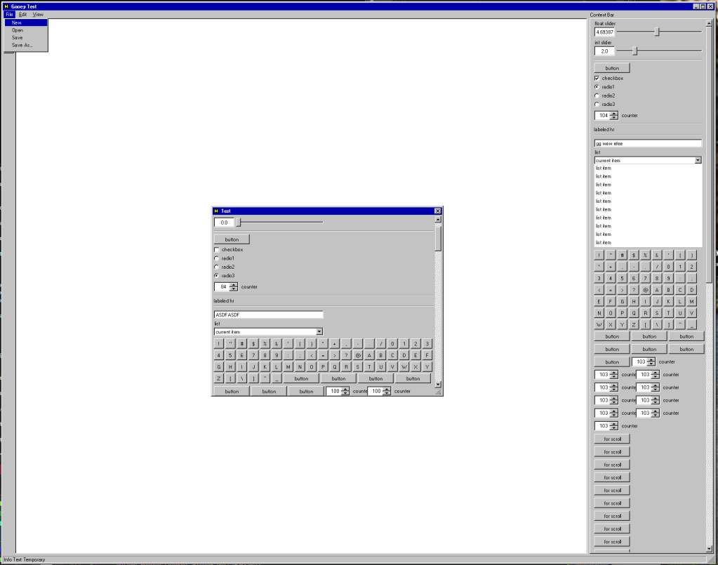 Overhauling the UI code for the nth time. I made both the API and the code behind it simpler and added some more widgets. This won’t be the last time I’ll need to overhaul it, but I think I’m getting close. Next, I’m going to update my 3D UI code.